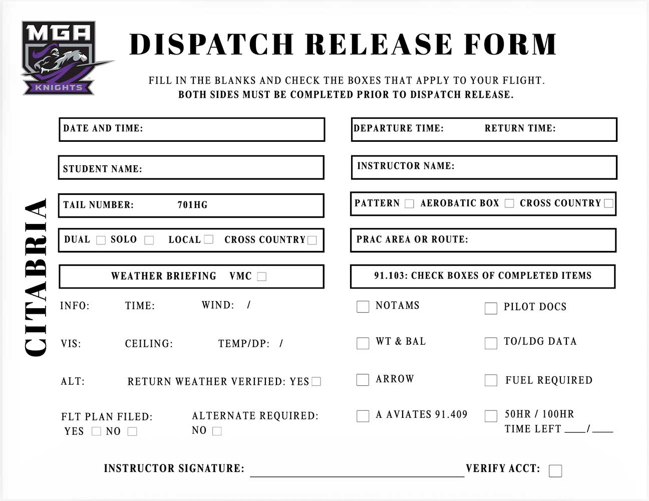 Print for a kneeboard sized checklist